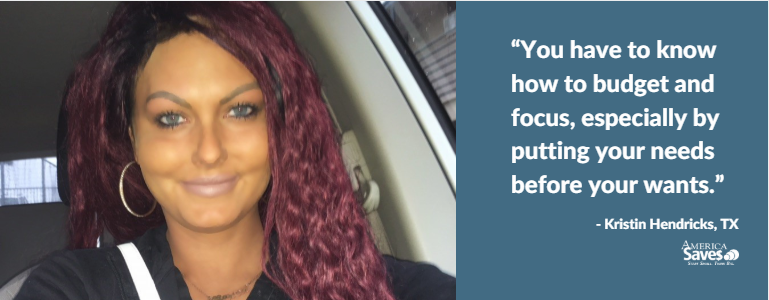 Kristin Hendricks, a single mother from Texas, understands the importance of saving money and following a tight budget. She decided to make saving money a priority when she gave birth to her son.